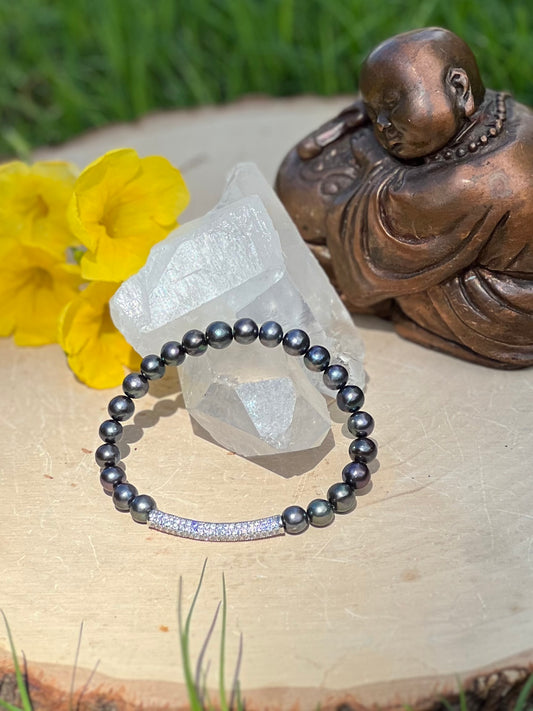 Sunstone and Gold plated Hematite Mother of Pearl Hamsa Hand bracelet
