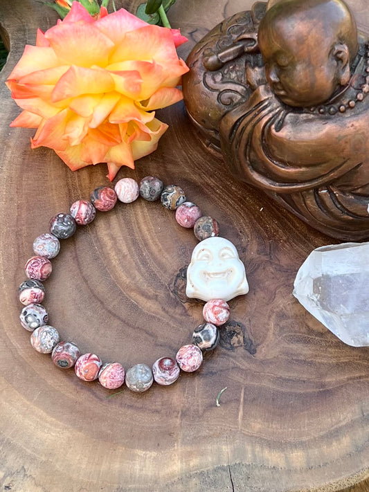 Leopard Skin Jasper with Ebony Wood and flower accent bead