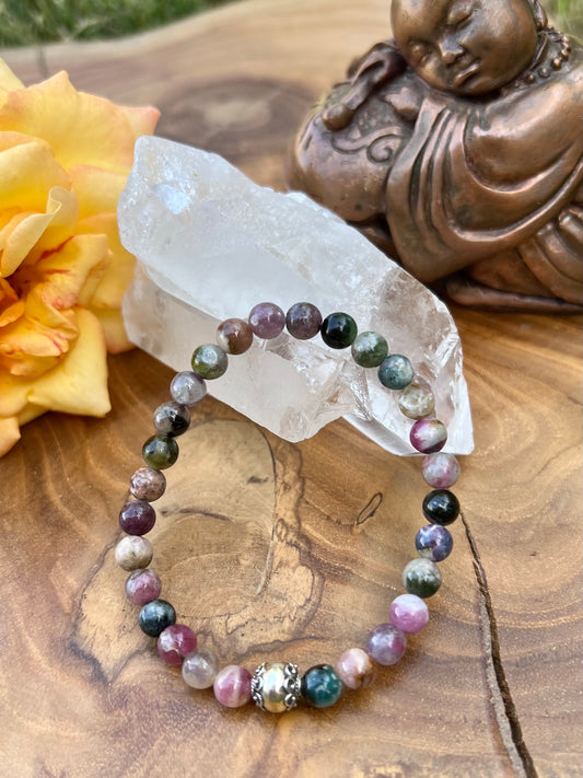Mystic Carnelian Bracelet with a CZ Diamond accent spacer