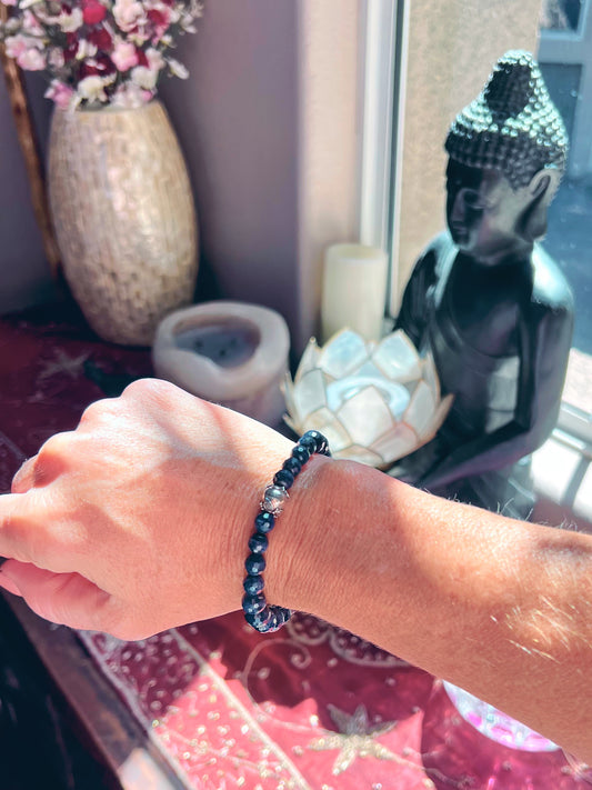 Selenite, Rose Quartz, Amazonite, and Turquoise Ombré bracelet for peace and Love