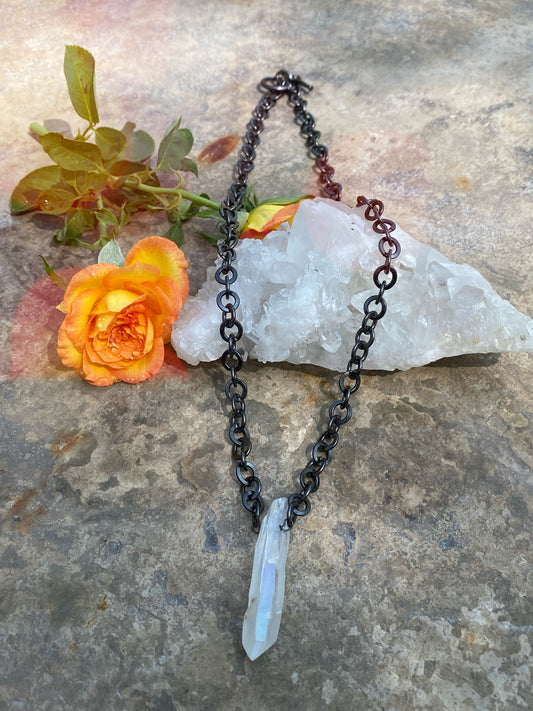 Angel Aura Quartz on a Clear Quartz Rosary Style Necklace