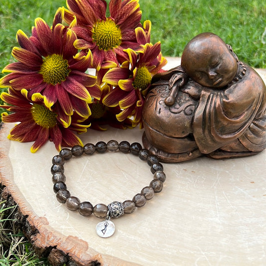 Smokey Quartz and Pyrite Lotus Flower Bracelet