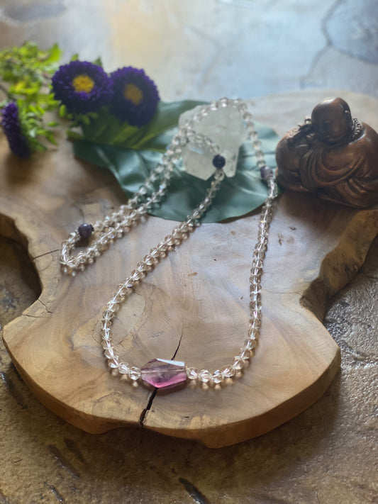 Clear Quartz & Fluorite Mala Necklace