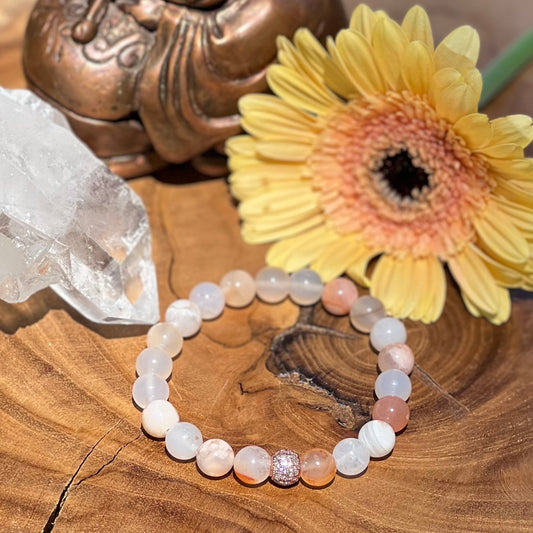 Matte Rose Quartz and Peach Moonstone Bracelet for creating self-love
