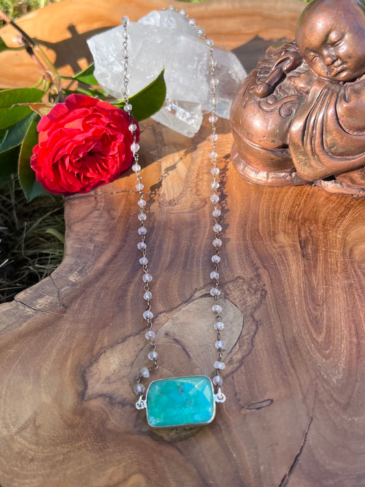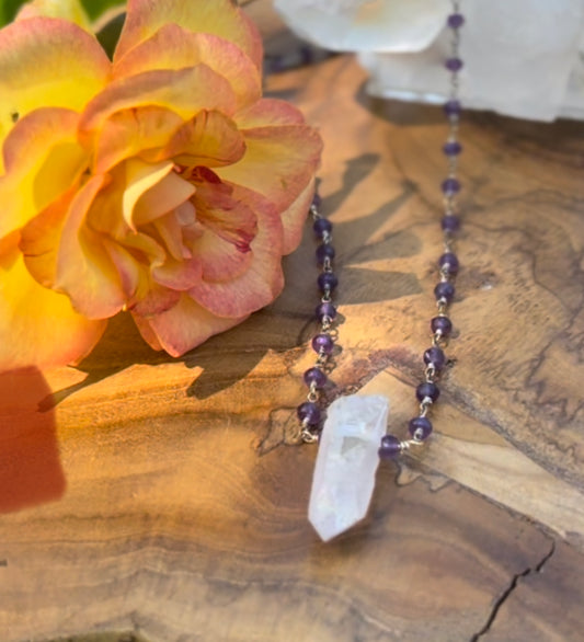 Angel Aura Quartz Point on a Rosary Style Amethyst Necklace