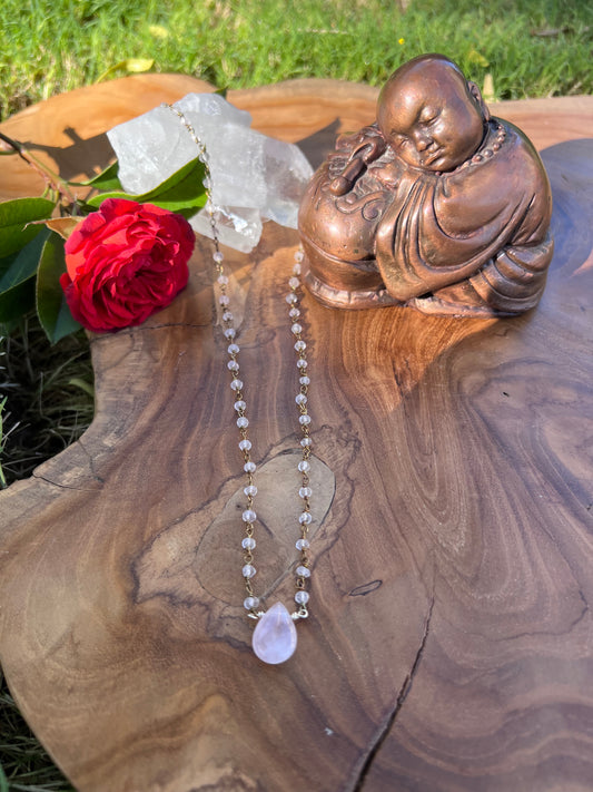 Rose Quartz Necklace on a Rose Quartz Rosary Style Chain