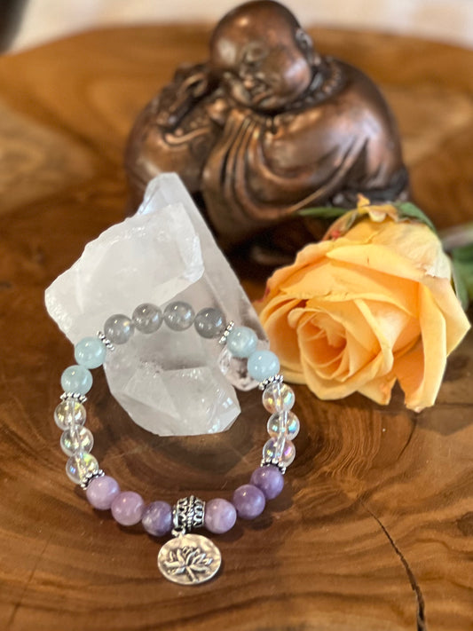Labradorite, Angel Aura Quartz, Lepidolite, & Aquamarine Bracelet for Spiritual Communication