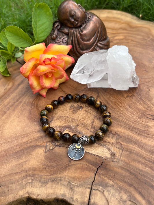 Tiger’s Eye Bracelet with a Crescent Moon charm