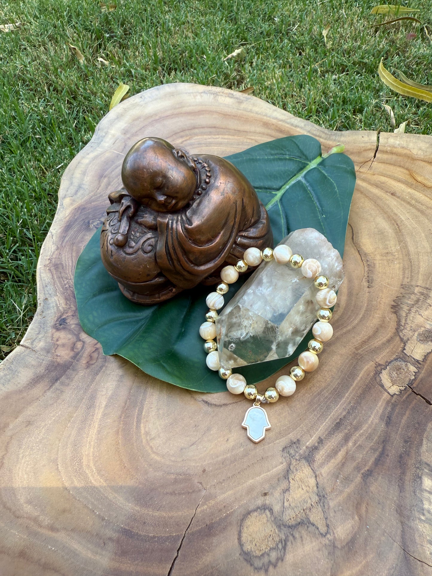 Mother of Pearl Bracelet with a Mother of Pearl Hamsa Hand
